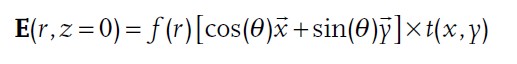 在模擬中,我們通過求解標(biāo)量和矢量狀態(tài)下的波方程,重現(xiàn)了結(jié)構(gòu)光聚焦的結(jié)果。具體來說,對于漩渦光束,我們將平面波條件替換為以下光條件: